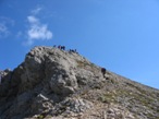 La ferrata del Maximilianweg non è da considerarsi una via ferrata vera e propria, quanto invece è un sentiero attrezzato. La particolarità di questa via attrezzata è la costante esposizione anche nei tratti dove non è presente il cavo. Lo sviluppo dell'intero percorso è per la maggiore in cresta e in molte occasioni, sopratutto dove è maggiormente affilata ed esposta, non ci sono protezioni. Pertanto è necessario non soffrire assolutamente di vertigini ed avere buona sicurezza sulla roccia. In ogni caso gli appoggi e gli appigli sono ben evidenti e sufficentemente larghi da consentire i passaggi senza difficoltà tecniche o grossi sforzi fisici. Solo in due passaggi, un camino e la salita finale alla cima, sono di forza, ma semplici da superare. Il panorama dalla cresta e dalla vetta è stupendo, si può vedere a colpo d'occhio tutto l'Alpe di Siusi, il Catinaccio, Il Pordoi, il Sella, la Marmolada e le Torri del Vaiolet. La discesa avviene poi sempre su sentiero attrezzato fino al Rifugio Tires. |