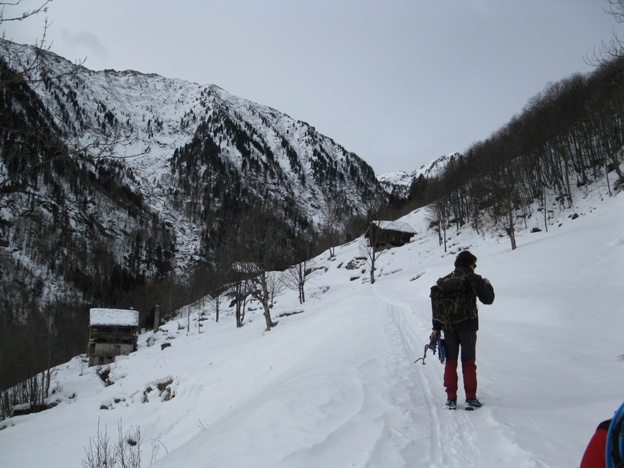 Si raggiunge con l’auto il paese di Issime risalendo da Pont St Martin la valle, e poco prima di uscire dall’abitato si svolta a sinistra seguendo le indicazioni per Grand Champ, Crose e Rollie seguendo la strada principale fino a dove è possibile salire con l’auto. Lasciata l'auto si prosegue lungo la strada principale che con un percorso lungo e pieno di tornanti porta fino alla chiesetta di San Grato. Il percorso costeggia il fianco della montagna esposto a ovest, pertanto è sconsigliabile percorrerla dopo abbondanti nevicate. Raggiunta la chiesetta, si prosegue in direzione sud-est per poi piegare decisamente ad est per raggiungere gli altri piccoli insediamenti. Seguendo sempre la stessa direzione si giunge nel pieno del vallone entrando in un bellissimo bosco. E' opportuno arrivati al piccolo insediamento di Stubi risalire per qualche decina di metri verso il piccolo complesso di Vleukie posto poco più in alto a nord-est e da qui proseguire di nuovo verso est. Questo evita di passare lungo la linea del sentiero 1c che effettua alcuni traversi scomodi per le ciaspole. Proseguendo dritti nella stessa direzione si giunge nalla parte finale del vallone al cospetto del colle Dondeuil e delle belle Dame di Challand. |