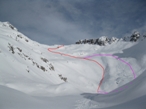 Si raggiunge con l'auto l'abitato di Bazena parcheggiando di fronte all'Albergo Tassara. Dal parcheggio si prosegue con ciaspole ai piedi in direzione nord-est puntando verso un dosso con in cima una croce. Giunti nei pressi del dosso, lo passa alla sua sinistra risalendo per alcune decine di metri entrando in un piccolo valloncello. Prima di entrare nella parte più stretta del valloncello, a quota 1900 circa, si devia a sinistra risalendo di qualche metro per imboccare la traccia della strada carrozzabile che porta alle malghe di Valfredda. Seguendo facilmente il percorso sempre nell'ampia conca si giunge alla Malga Valfredda. Da qui è già ben visibile di fronte a noi spostato leggermente a destra il Passo delle Capre. Si prosegue inizialmente in direzione nord-est per poi via via piegare in direzione est risalendo verso passo. Giunti in prossimità (pochi metri sotto) del Passo delle Capre, occorre spostarsi a sinistra puntando verso le prime rocce della cresta sud del Monte Cadino e superato un dosso in leggero traverso si oltrepassa il Passo delle Capre. Questa deviazione evita di scollinare dritto dalla direzione di andata in quanto ci sono alcuni salti di roccia e un traverso piuttosto ripido. Oltrepassato il piccolo passo, si prosegue di nuovo in direzione nord-est effettuando alcuni traversi alla base della cresta sud del Monte cadino. Occorre prestare molta attenzione a questo traverso. Si scende di qualche decina di metri per poi proseguire in piano fino alla Malga dei Dossi. Dalla Malga dei Dossi si prosegue nella stessa direzione in leggera salita e in alcuni tratti in piano, traversando ora al di sotto del ripido pendio est del Monte Cadino. Procedere con molta attenzione lungo i punti più ripidi valutando la stabilità del manto nevoso e controllando se il pendio è già scarico. Superati i due traversi più ripidi si giunge in una bella conca circondata da alcuni eleganti dossi, dove proseguendo sempre in direzione nord-est e con andamento spesso pianeggiante, si giunge nella minuscola conca che ospita il Lago Nero. Sopra di esso a nord è situato il Passo della Vacca. A seconda della quantità di neve accumulata si circumnaviga il lago a destra o sinistra. Se la neve ha scaricato bene in precedenza è più conveniente salire dalla sponda orientale del lago passando sotto le Creste di Laione in modo da rendere la salita più dolce. Altrimenti è anche possibile passare nella stretta gola che si trova poco dopo la sponda occidentale risalendo con più decisione verso il passo. Risalito il tratto del Lago Nero si giunge al di sotto dell'ampio cono del Passo della Vacca. Si risale il modesto pendio evitando i tratti più ripidi fino a giungere al Passo. Dal Passo della Vacca si continua a camminare in direzione nord-est superando alcuni piccoli dossi con brevissimi sali scendi ed effettuando traversi su dolci pendii fino a giungere al Lago della Vacca e al Rifugio Tita Secchi. |